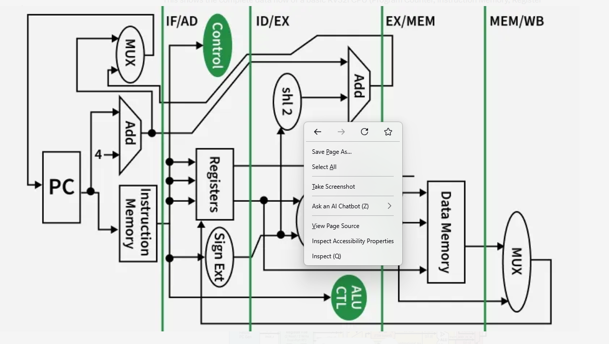 - Register File → read rs1/rs2