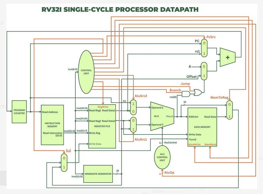 - Immediate Generator → create correct 32-bit immediate based on format